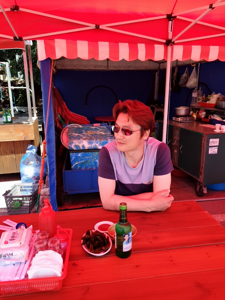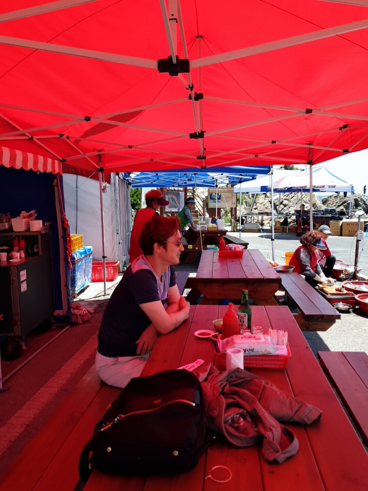 축산항의 작은 포장마차에서 해산물을 먹는데...