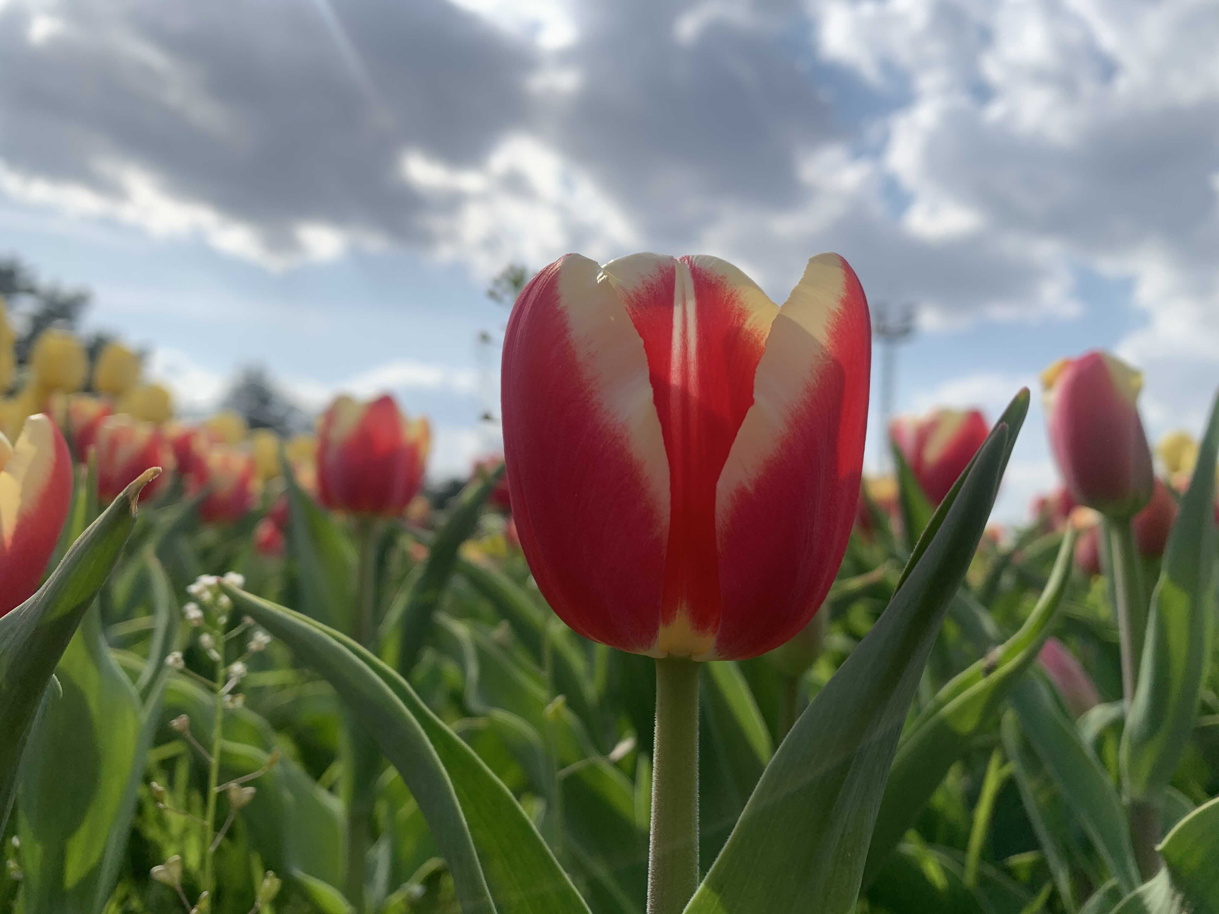비가 내린 날 오후의 청주 문암 생태공원 튤립