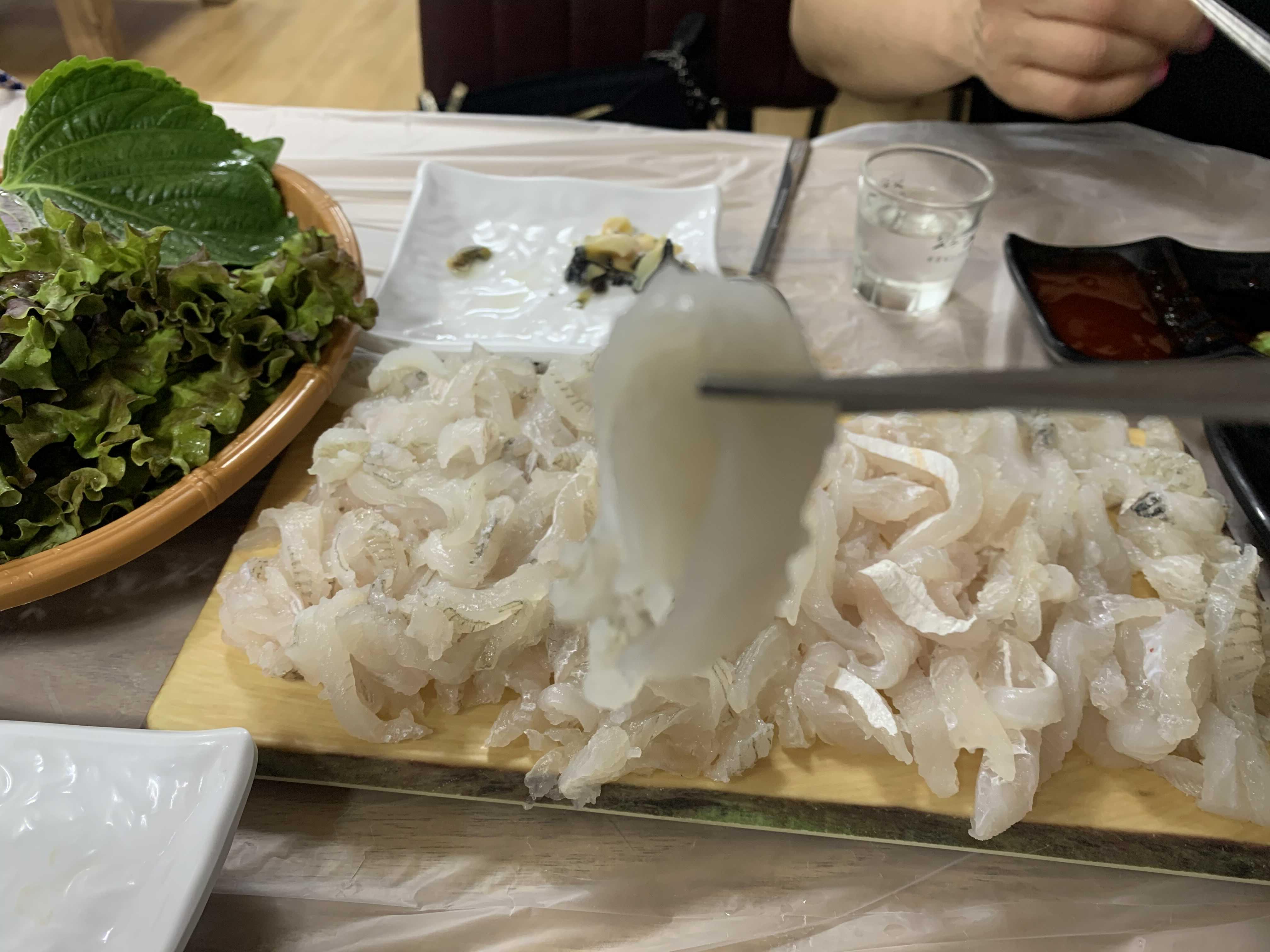 토요일 오후에 출발해서 저녁에는 강구항에서 도다리회를 먹고, 펜션에서 1박을 하고, 아침 일찍 장사해수욕장에 갔습니다.