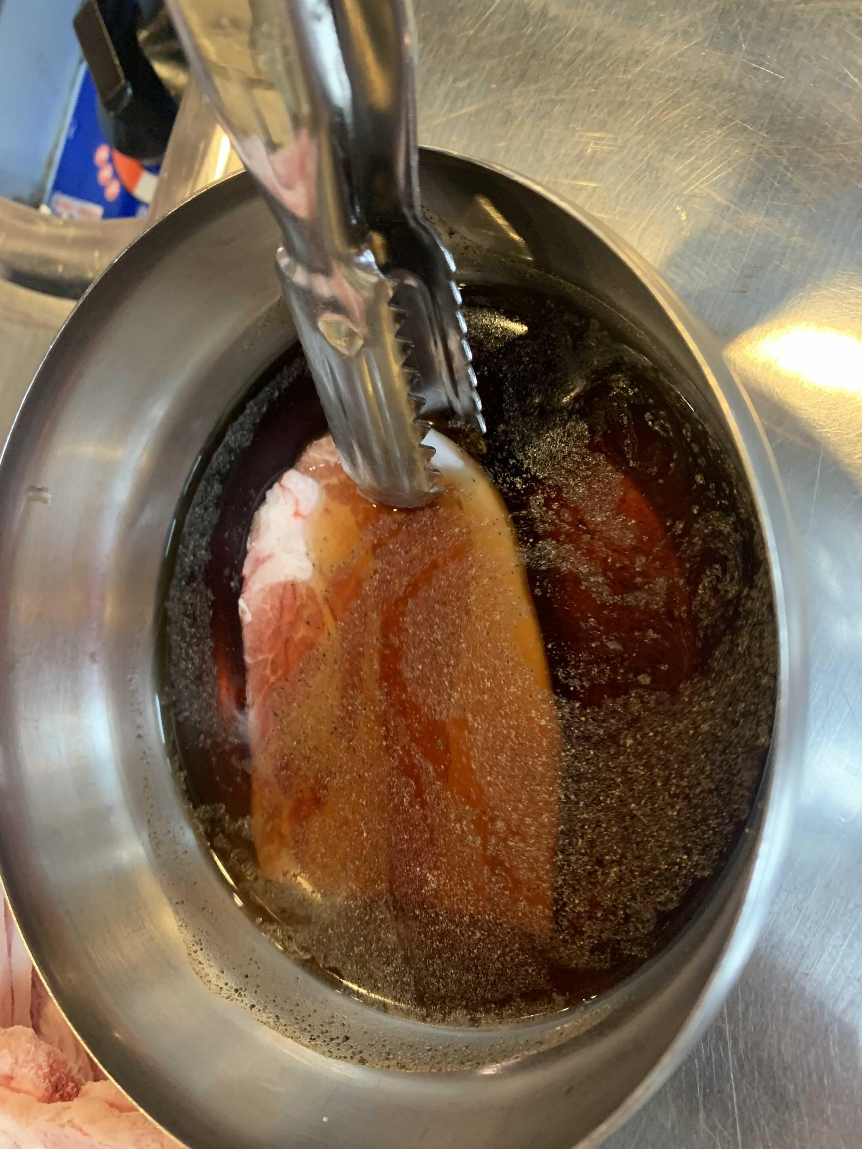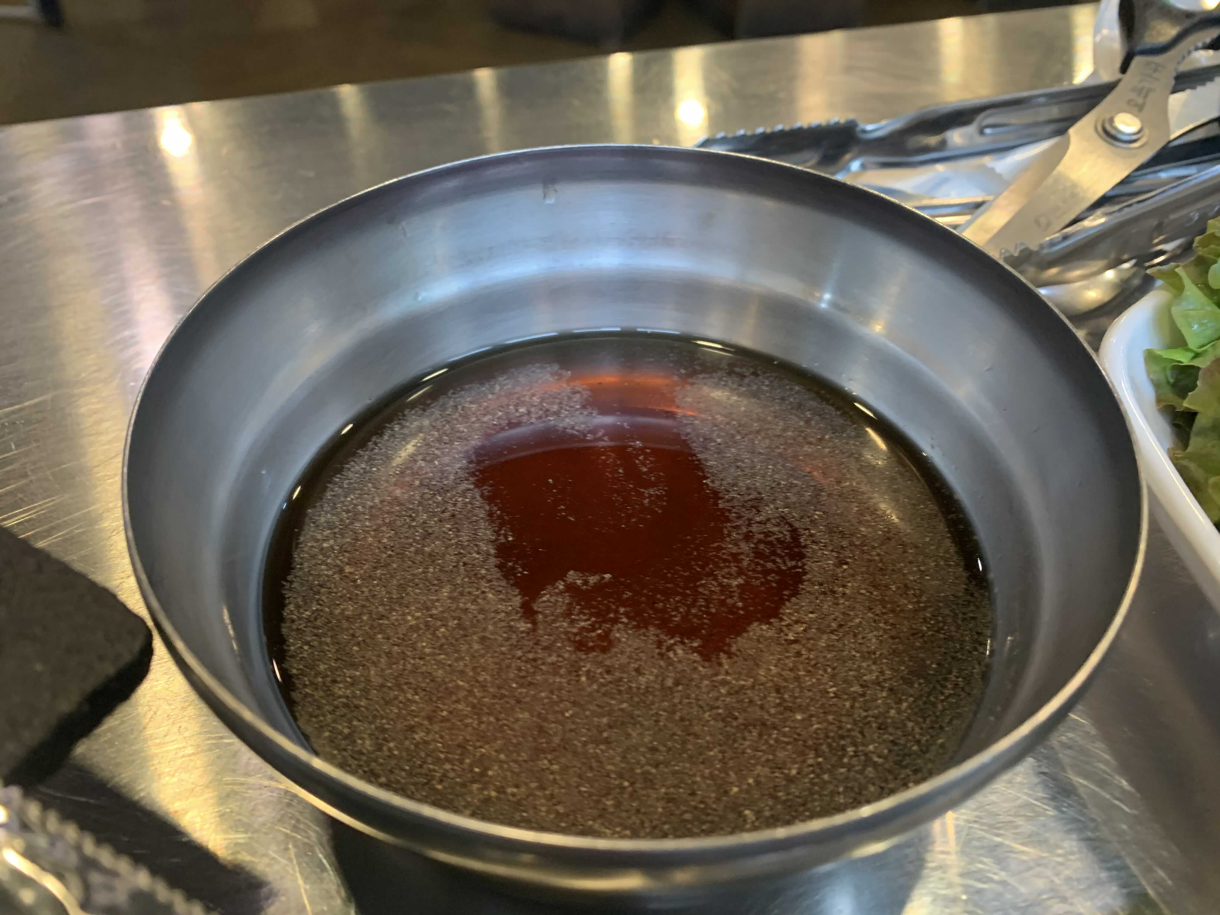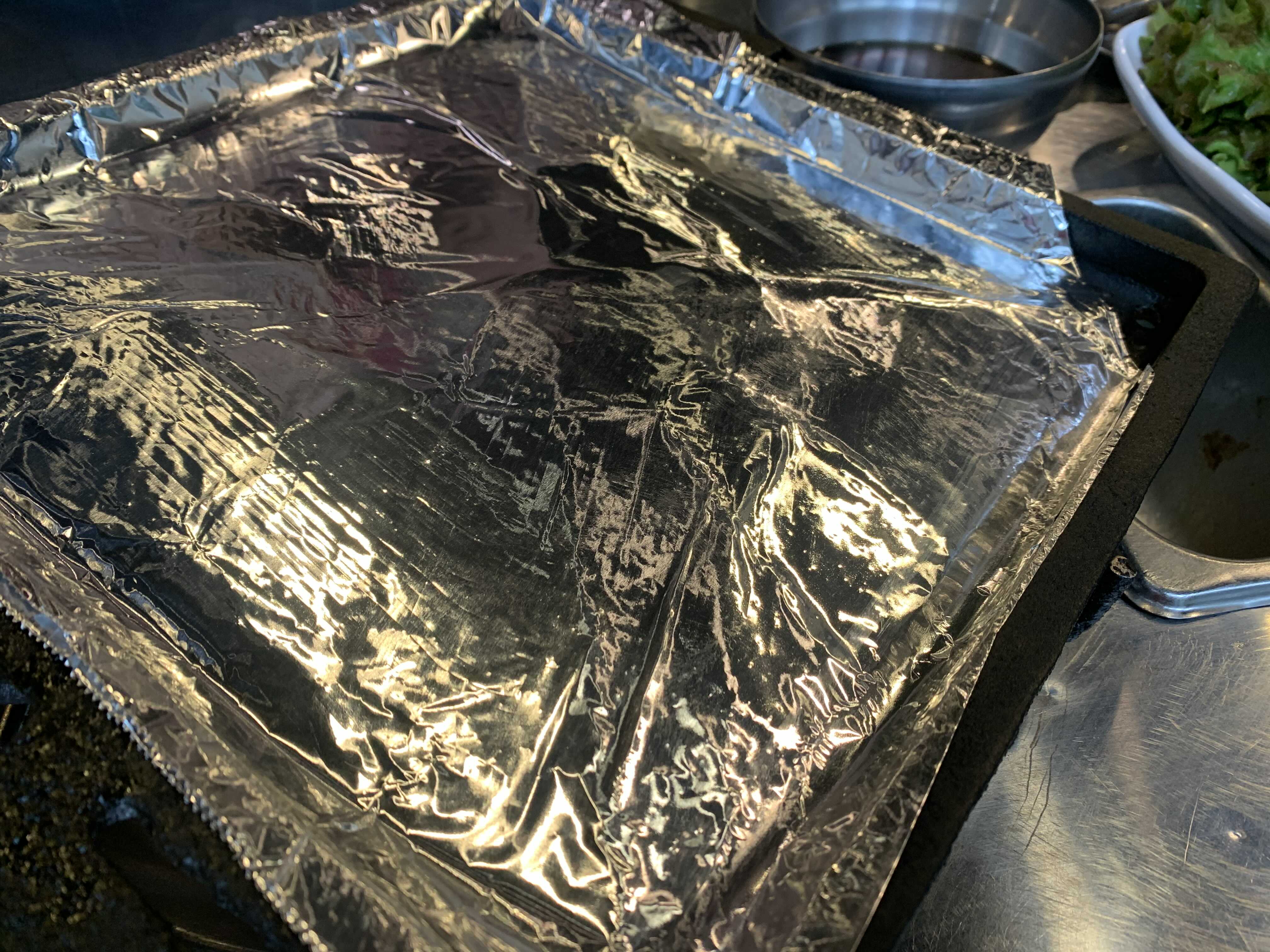 달궈진 불판에 간장물에 적신 삼겹살을 살포시 올려줍니다.