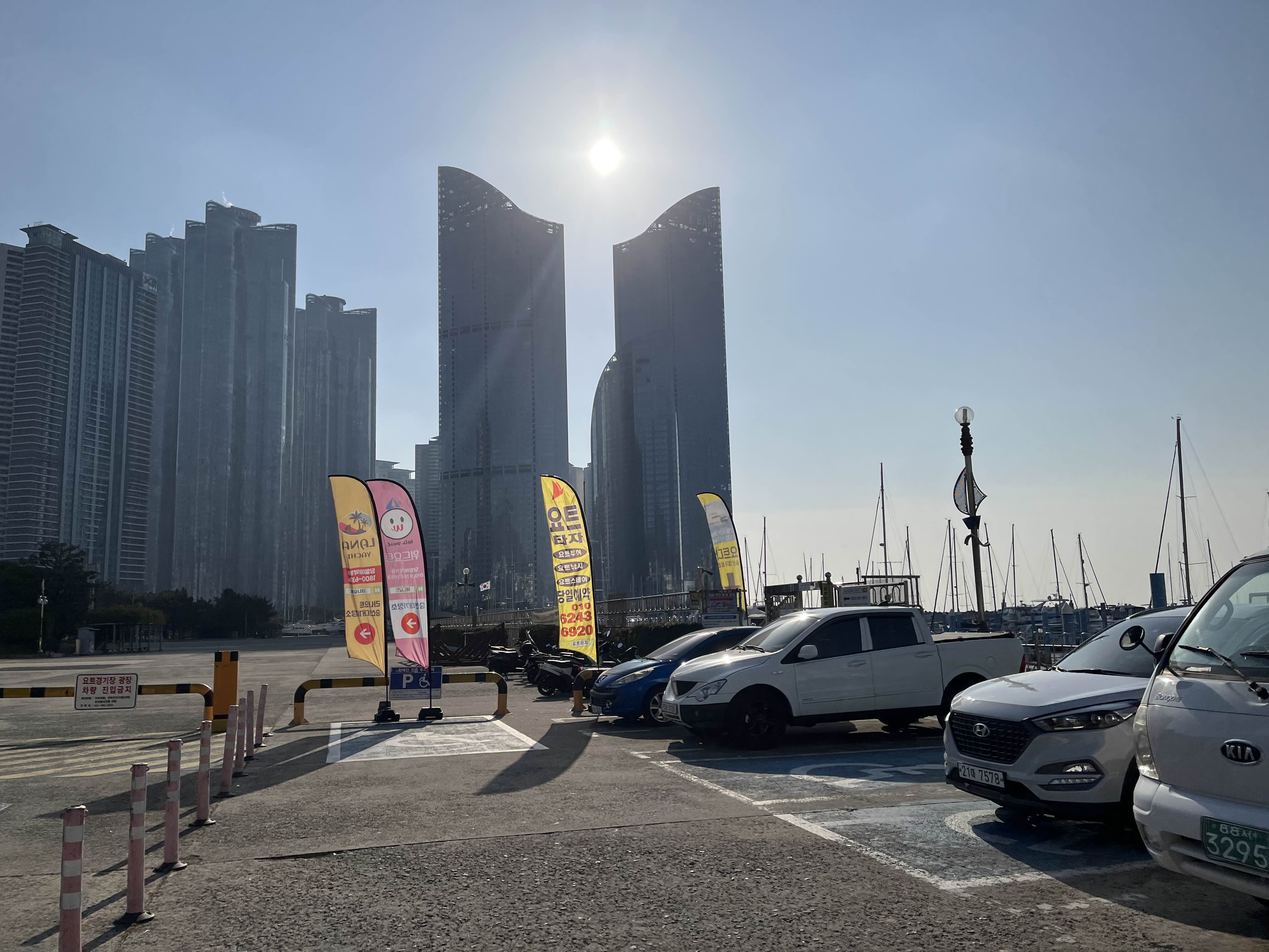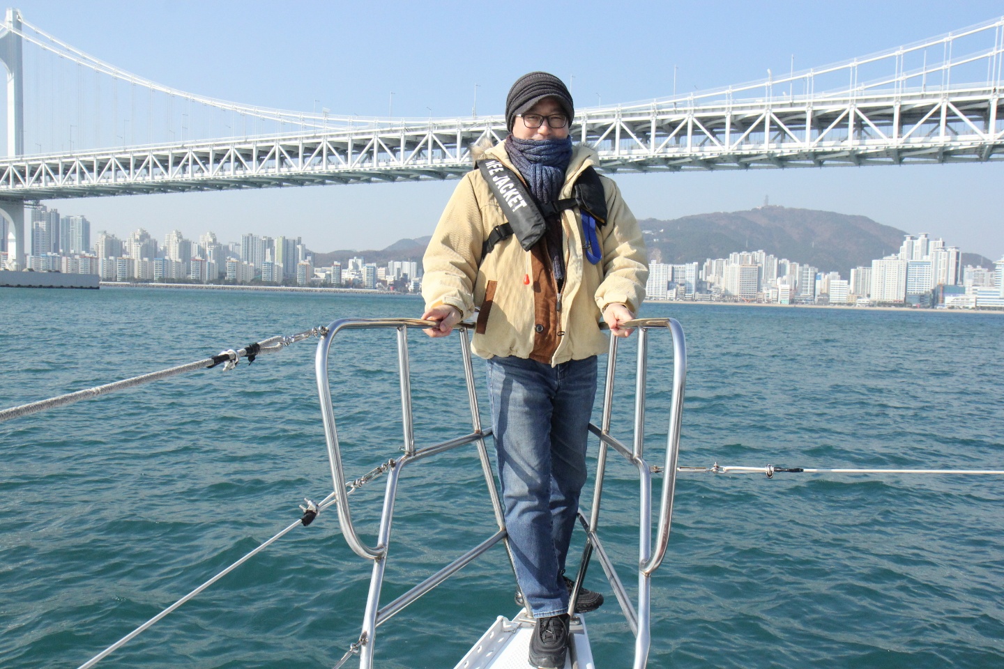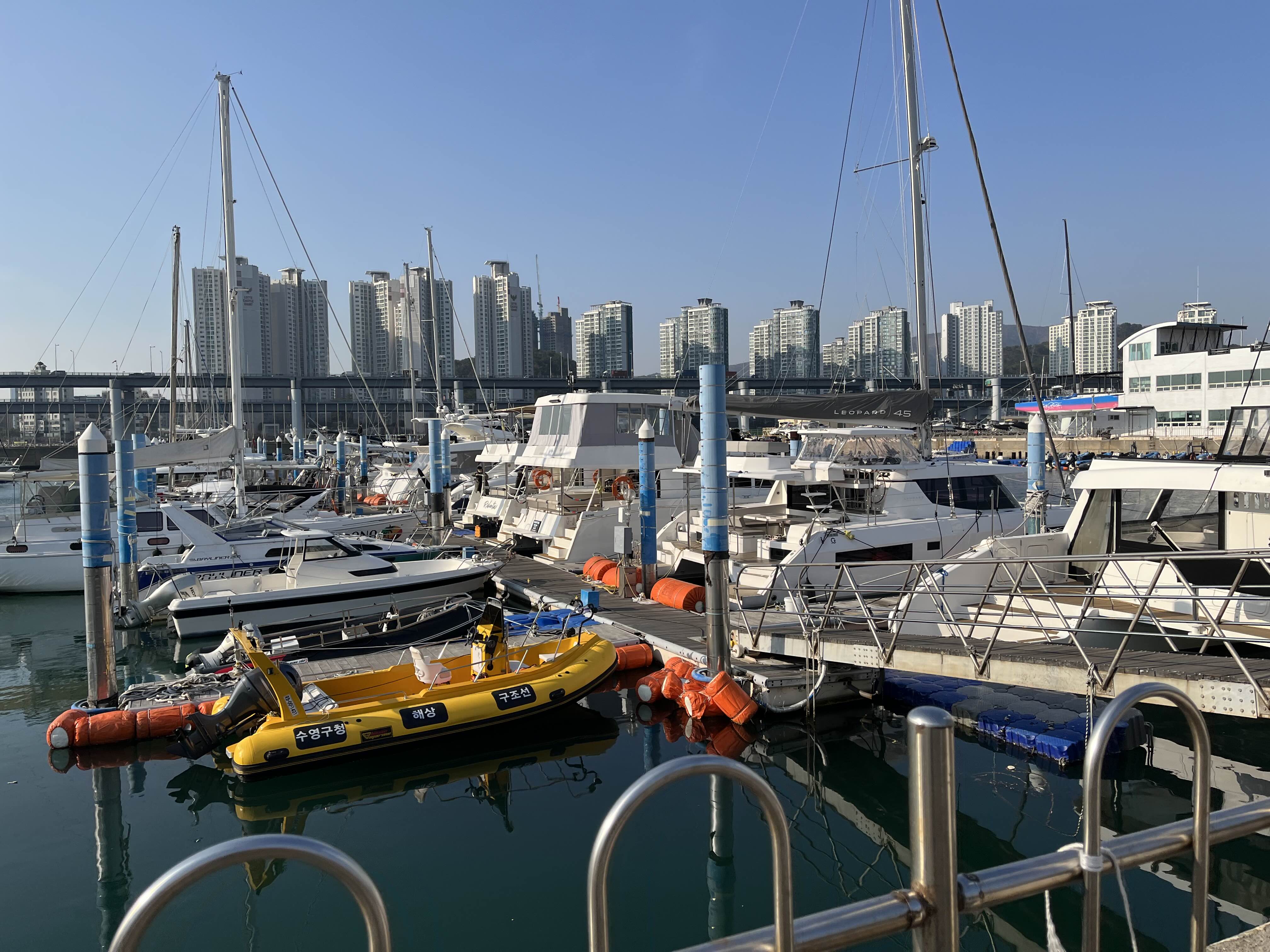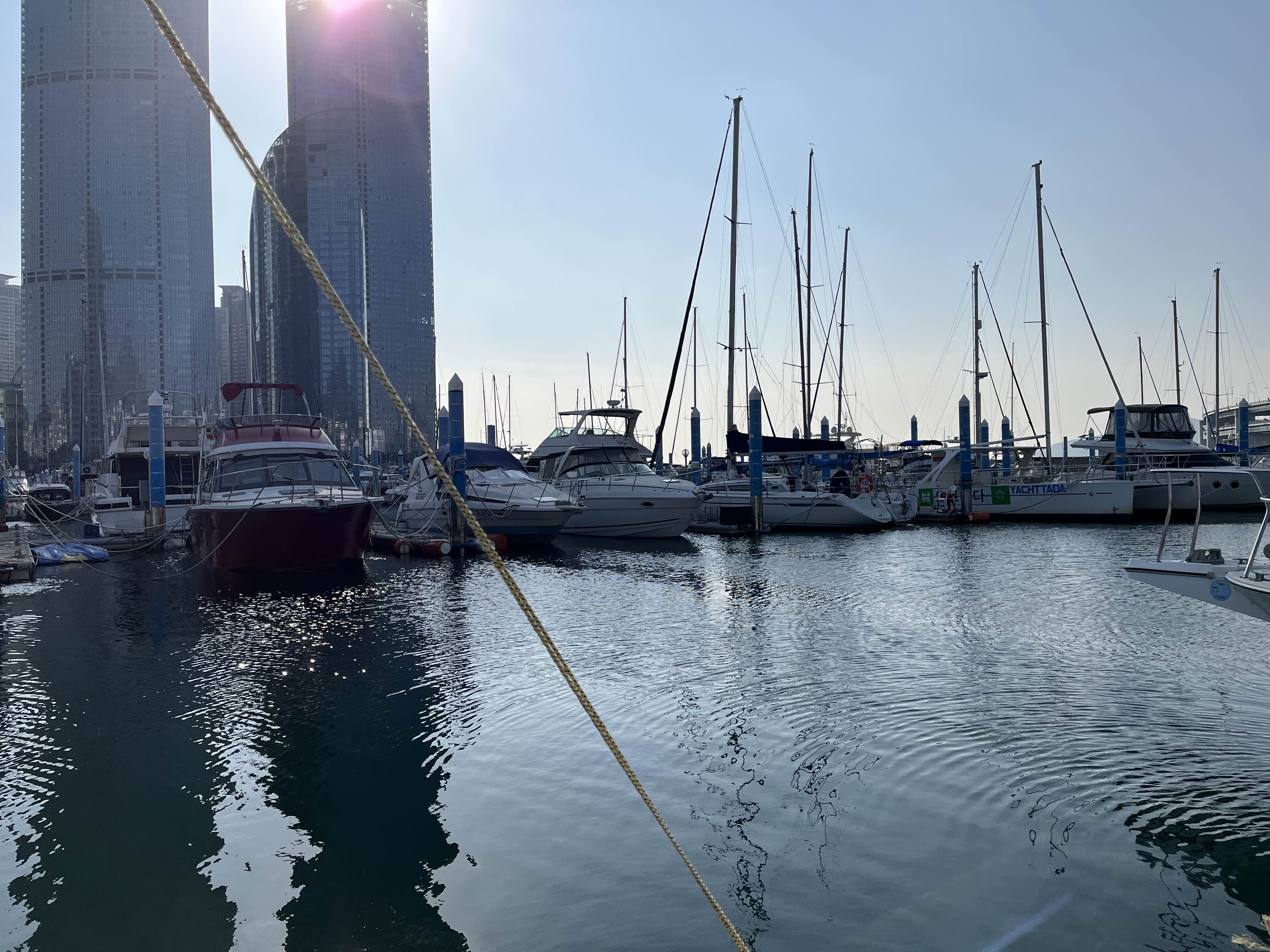 부산을 여행하다가 요트를 탔습니다.