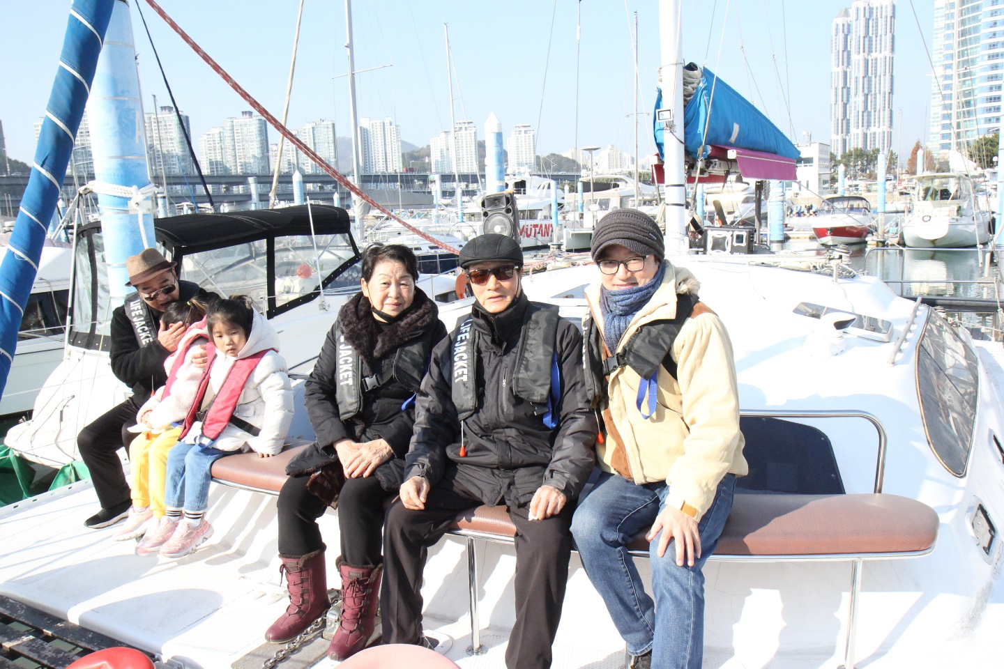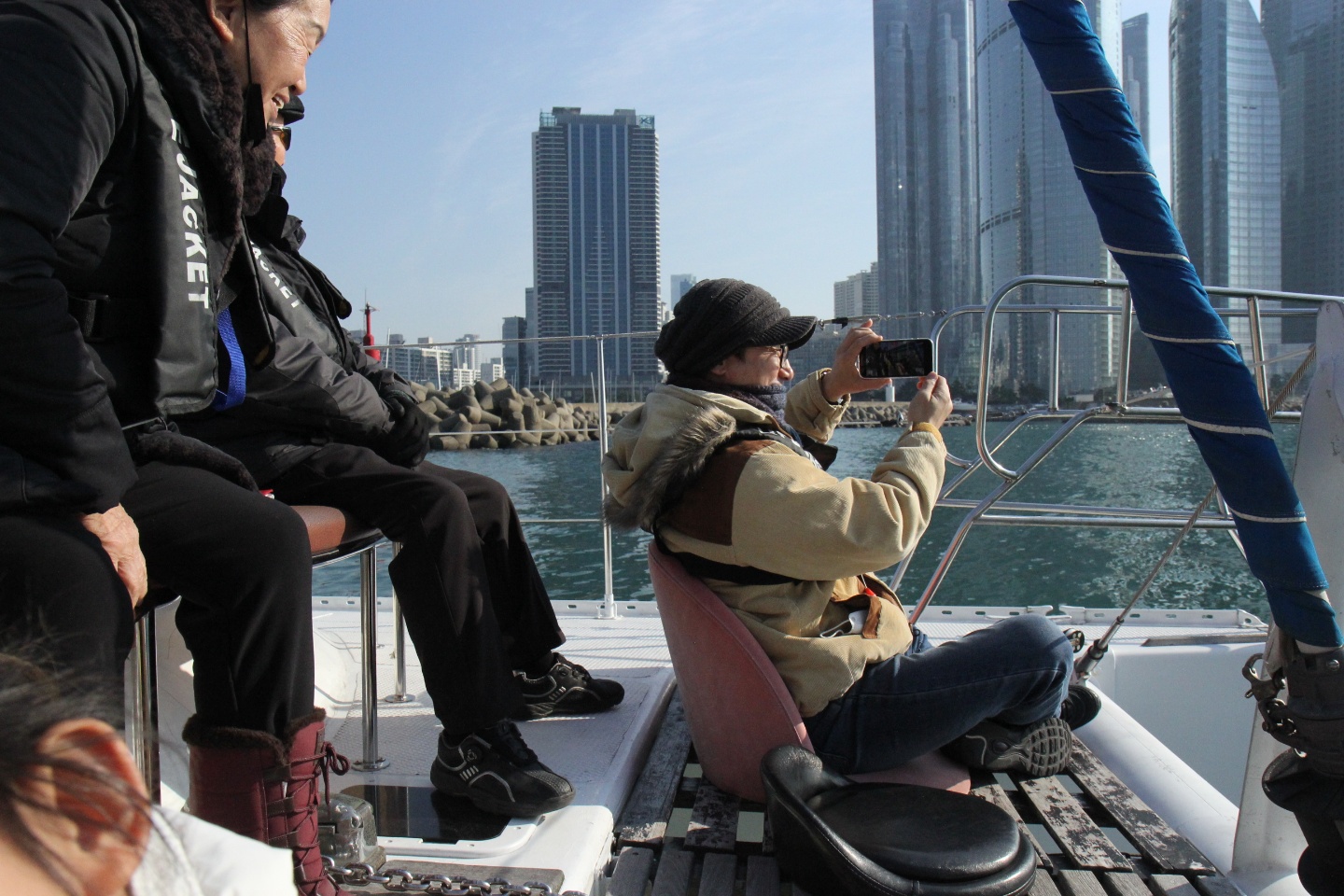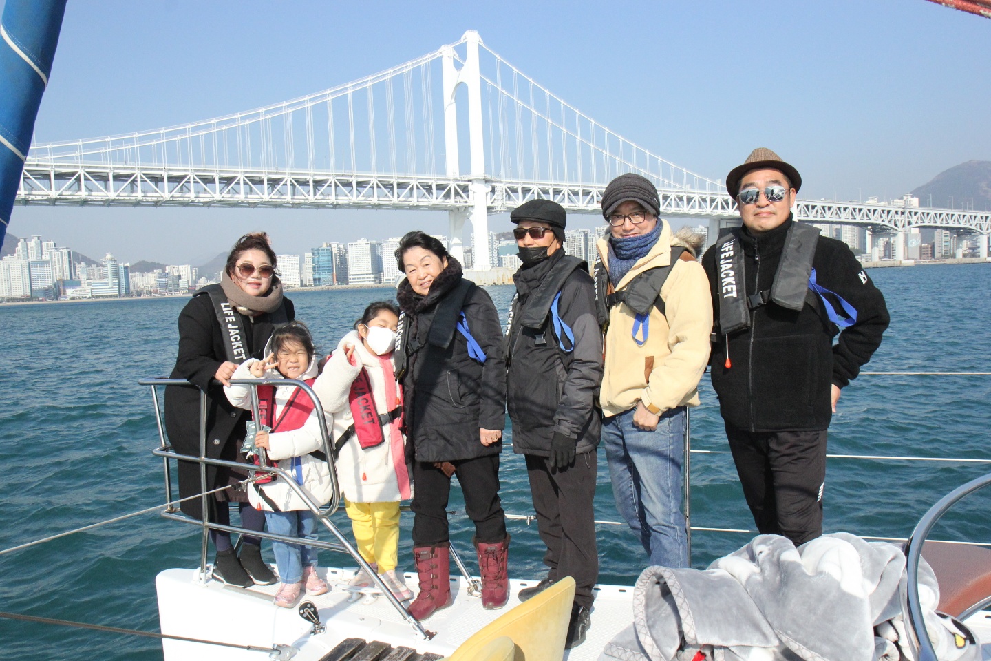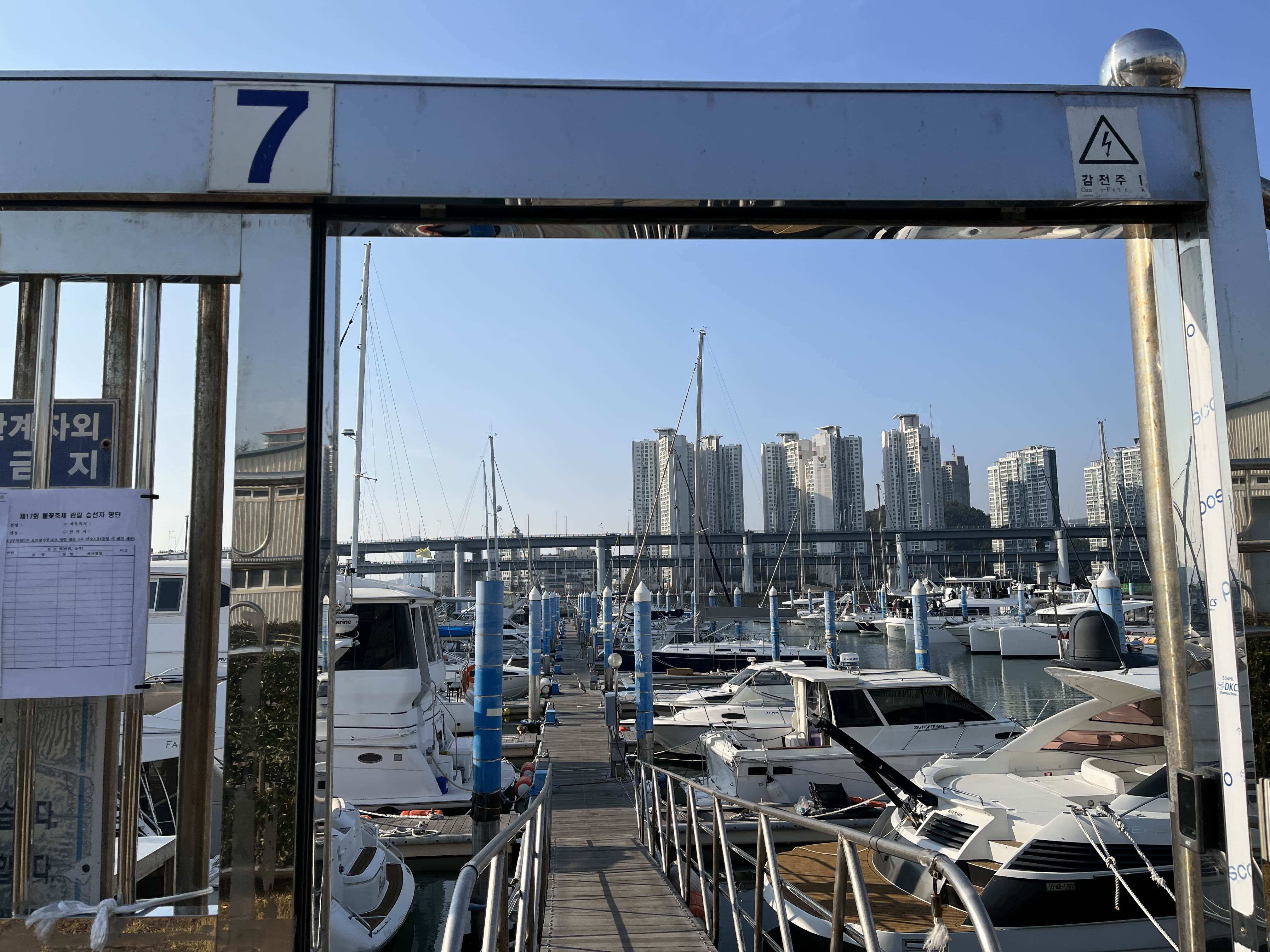 부산을 여행하다가 요트를 탔습니다.