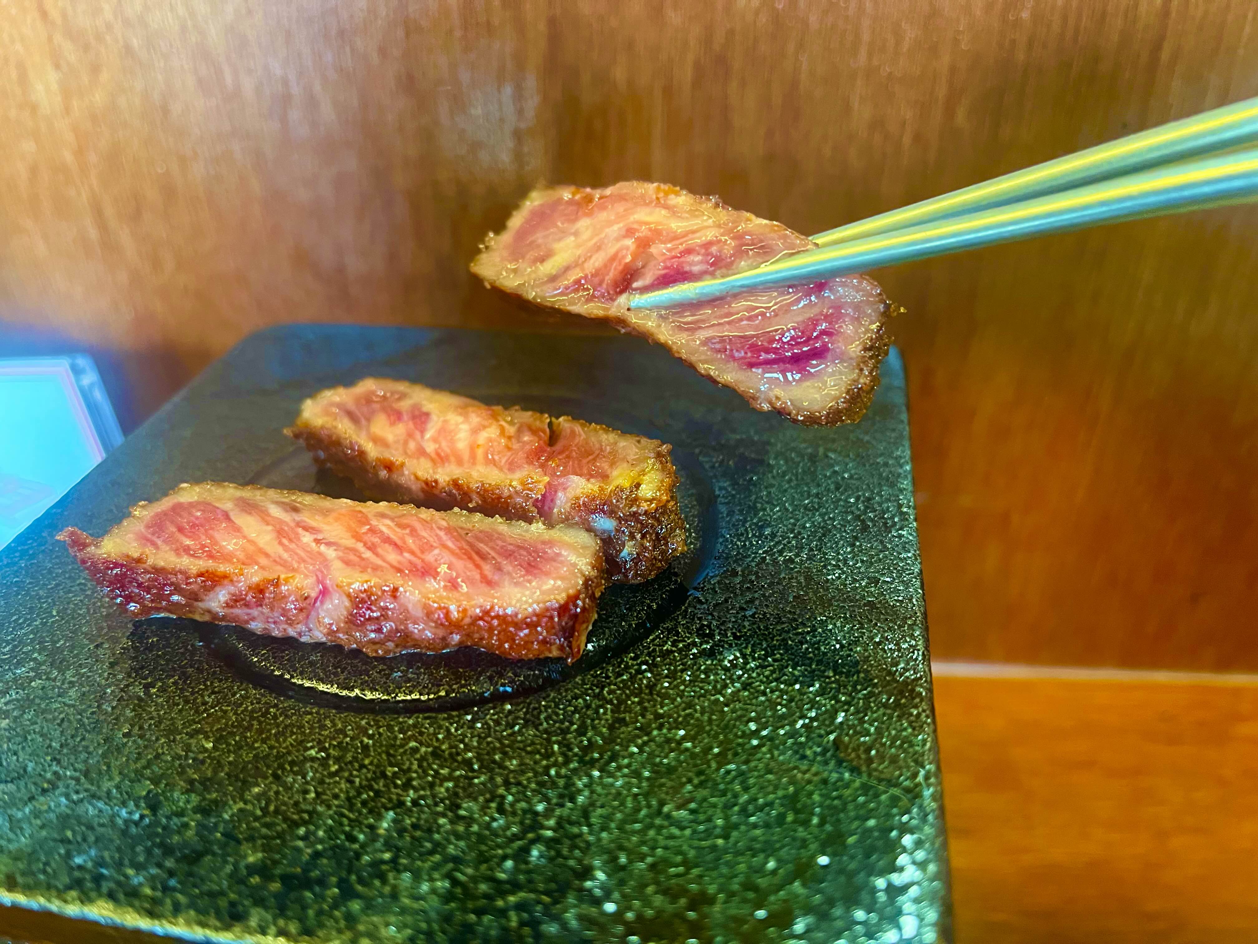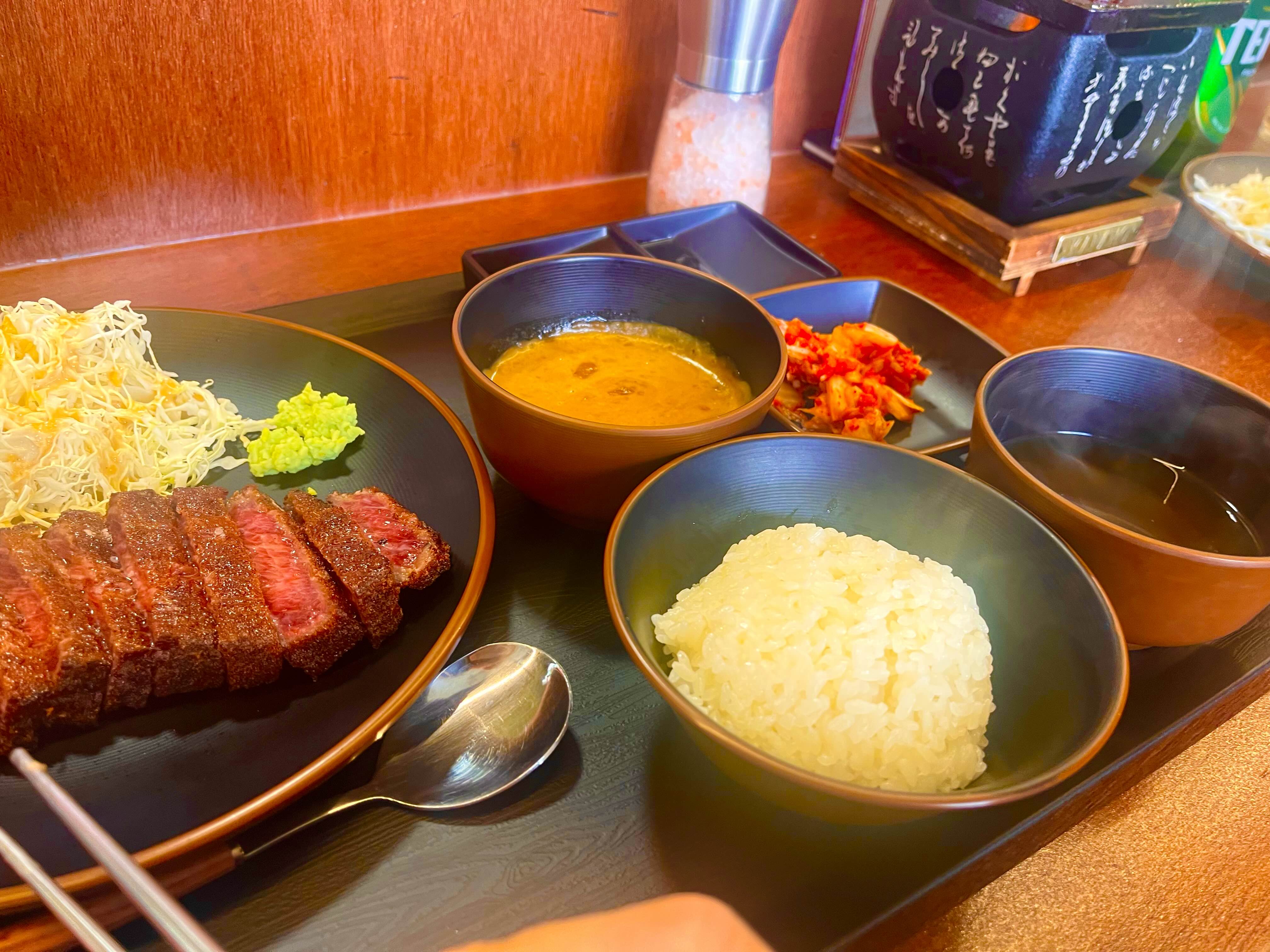 규카츠를 개인화로에 직접 구워 먹는데 소고기가 너무 맛있습니다.